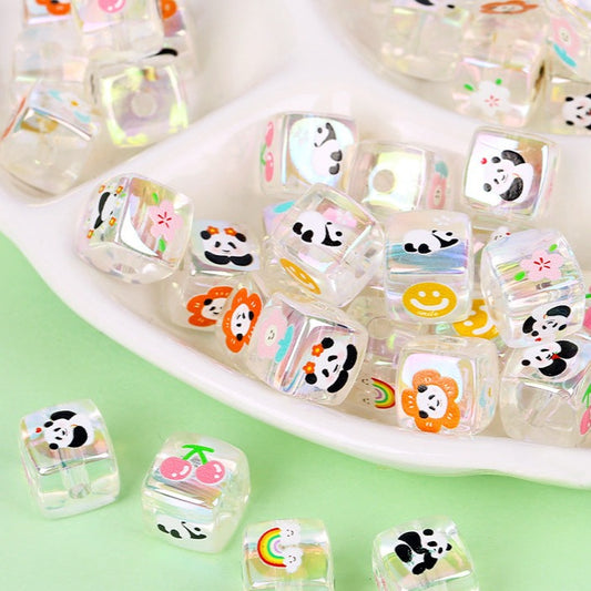 30 Pieces Cute Cartoon Panda Square Beads