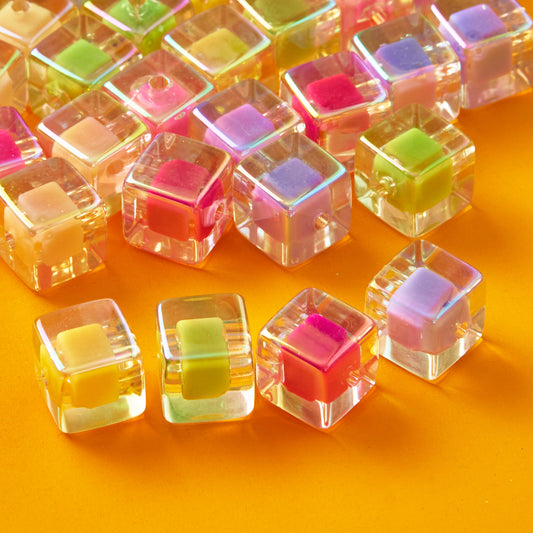 30 Pieces Rainbow Cube Beads