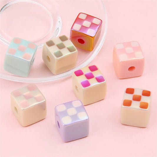 30 Pieces Square Shape Checkerboard Beads