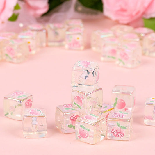 30 Pieces Cute Peach Square Beads